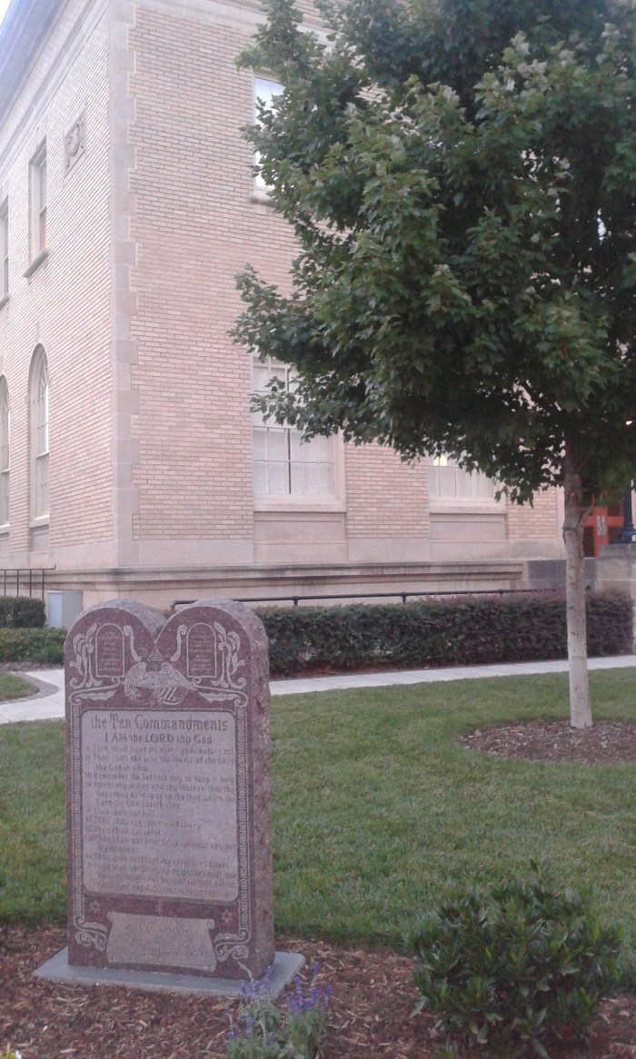 But I had to do a double-take when I deciphered what was inscribed on this particular slab of stone on the public lawn. Yes, lying there like the proverbial dead horse, cold and stiff, cumbersome in it’s off-center placement facing the intersection (I assume to garner the maximum exposure to passersby) was that old gelding, The Ten Commandments.