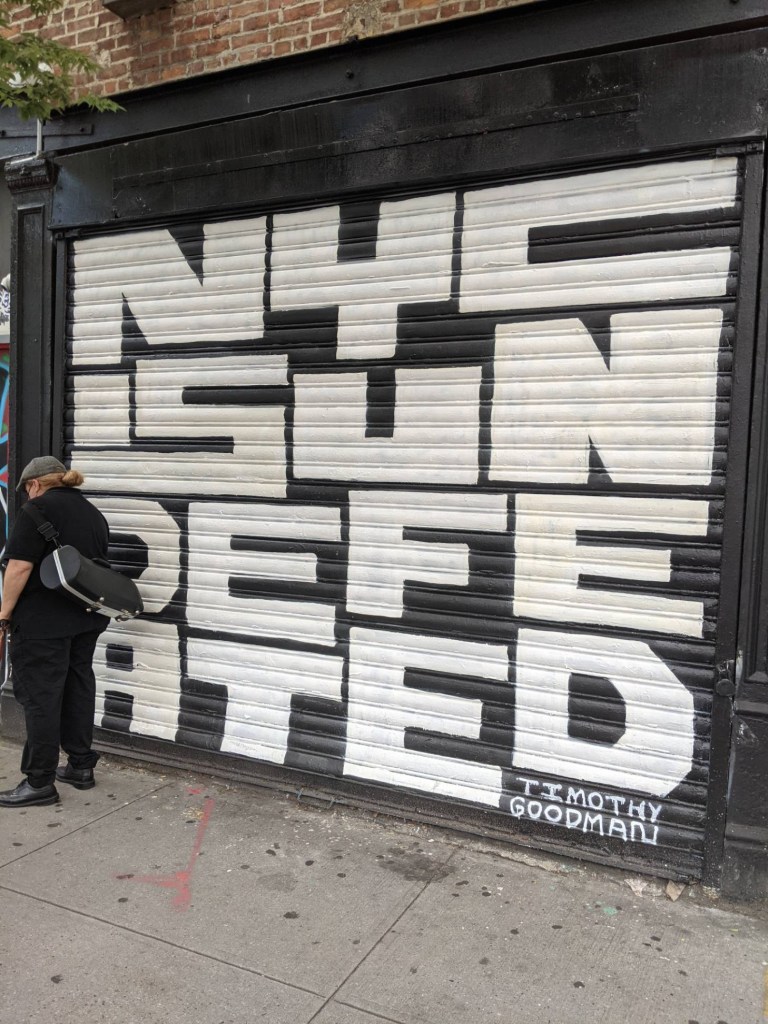 After a year and a half of living in the “Time of Corona” and not going anywhere, it seemed only natural to choose to go to NYC for our vacation. Quite often my friends and I talk about the way the city used to be and wax poetic about it, but no matter how much the neighborhood changes, the storefronts, the bars, the people, the ghosts of those who once inhabited it have left their indelible mark. No amount of construction or frou-frou-drink serving bars can change that.
