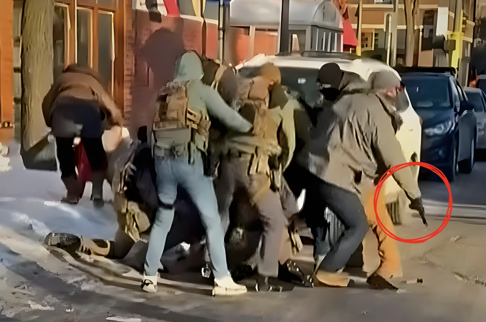 Still from video: a federal agent removes Alex Pretti’s legally carried gun from
